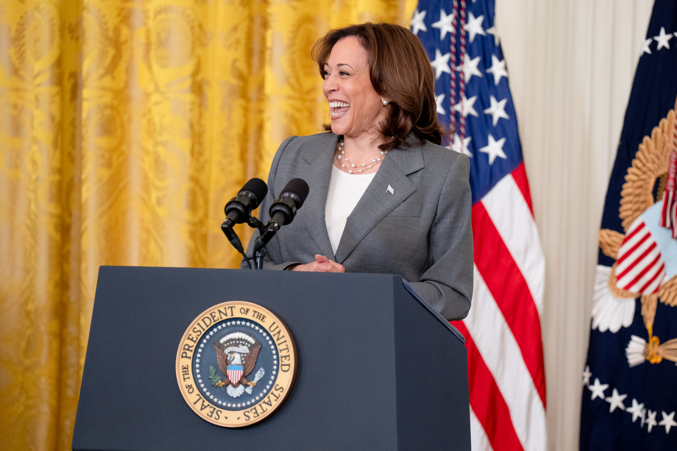 Kamala Harris is an idiot, plain and simple. She is a puppet for Barack Obama, who is the puppet master.Wake up America. Listen to this fraud and her fraudster companion. Two peas in a pod. As Ronald Reagan said, are you better off now than you were four years ago?