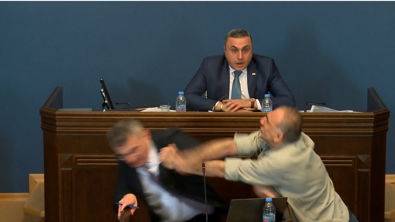Mamuka Mdinaradze, the leader of the ruling Georgian Dream party’s parliamentary faction, was punched in the face by opposition MP Aleko Elisashvili during a heated discussion. Video evidence paints a clear picture of the chaos that ensued, with lawmakers leaping up from their desks and trading punches.